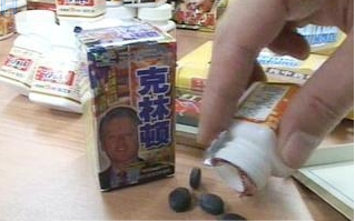 桃園縣衛(wèi)生局與警方稽查在公園販賣藥品的路邊攤,共查獲29種、339盒壯陽藥,其中兩種壯陽藥包裝最為夸張,一款稱“克林頓”,另一款“金功夫”則以李連杰為噱頭;這些藥品皆未經臺“衛(wèi)生署”核可,并驗出可能致死禁藥,警方將業(yè)者移送法辦。