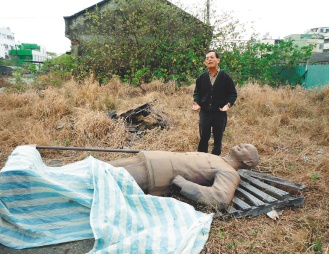 前晚七時許,這座矗立在站前的銅像被吊臂車拆除,民眾以為有人“偷”銅像,向警方報(bào)案。鳳山警分局趕到現(xiàn)場后,施工人員出示縣府公文,才知道是縣府進(jìn)行火車站圓環(huán)景觀改造工程,要將銅像移位。但民眾質(zhì)疑,即使移位,也要找個適當(dāng)?shù)攸c(diǎn)安置,為什么丟在雜草地上?