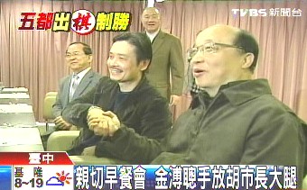 金溥聰邀胡志強(qiáng)吃早餐,過程中兩人互動(dòng)頻繁,但會不會有更親密關(guān)系,胡志強(qiáng)幽默帶過。胡志強(qiáng)說:“我還沒有到‘直轄市’的身份,如果爭取到競選然后當(dāng)選,說不定以后我也不想跟他十指相扣,還是找一個(gè)女生來好了!