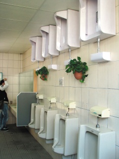 “咦! 小便斗、馬桶怎么倒置在墻上、天花板?”走進(jìn)臺(tái)灣醒吾技術(shù)學(xué)院的廁所,如果抬頭看,恐會(huì)一時(shí)反應(yīng)不過(guò)來(lái),以為眼花了,天花板又是地板,地板是天花板,人仿佛變成倒立站在天花板上廁所了。