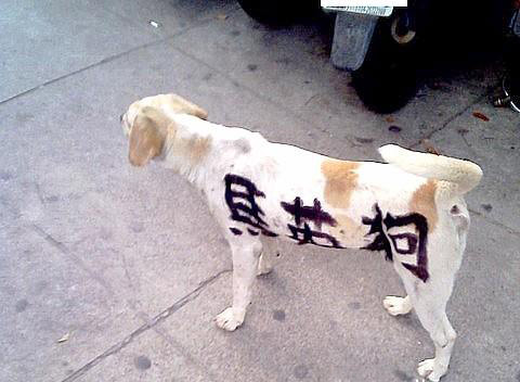 中新網(wǎng)4月14日電 據(jù)TVBS報道,臺灣政治戰(zhàn)火延燒到流浪狗身上,臺中中港轉(zhuǎn)運站前幾天出現(xiàn)一只白底黃花的流浪狗,狗身上被人用黑色噴漆寫了“馬英狗”三個字,民眾感覺有人把對政治的不滿,發(fā)泄在狗身上,實在很不人道,如果碰到護馬人士,這只狗啟不是要遭殃。