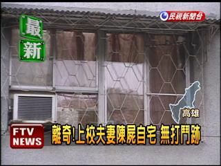 中新網(wǎng)4月19日電 據(jù)臺灣民視新聞報道,高雄縣鳳山工協(xié)新村18日驚傳一對夫婦陳尸住處的離奇命案,死者是60幾歲,上校退伍的曾清賢,與妻子雙雙陳尸在客廳跟臥房,警方說,由于現(xiàn)場沒有打斗的痕跡,門窗也沒有被破壞,將等檢察官進(jìn)一步驗尸,確認(rèn)死因。