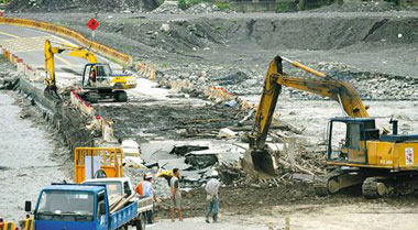 另外,高雄縣新威往六龜?shù)呐_(tái)27線甲便道,24日晨遭荖濃溪大水沖毀無(wú)法通行,軍方派官兵、機(jī)具搶通備援的六龜隧道;南橫利稻便橋也遭沖毀,包括利稻小學(xué)師生、營(yíng)養(yǎng)午餐、農(nóng)作物與病患,24日均由“滑索”接送。阿里山區(qū)前天降下超過(guò)300毫米的雨量,部分村落、人員受困,多條聯(lián)外道路中斷,救難人員24日前進(jìn)山美,利用“滑索”設(shè)備搭救12位受困新美村民。