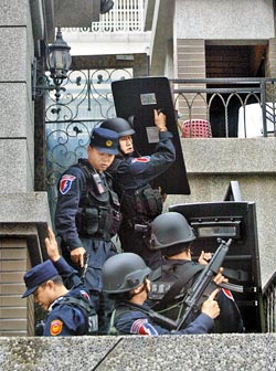 維安特勤隊是警界的精英組成,目前全臺共有一百三十名成員,“警政署長”王卓鈞已于昨深夜批準(zhǔn),今天派出四十人進駐臺中市;這批精銳部隊配備重武器,包括沖鋒槍、狙擊槍等,對黑道暴力犯罪具有壓制能力。