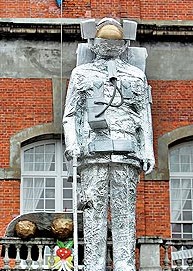 中新網(wǎng)6月7日電 據(jù)臺灣《蘋果日報》報道,蔣介石銅像也搞角色扮演?臺北市建國中學上周五舉辦畢業(yè)典禮,因今年畢業(yè)主題為科技未來風,學生用錫箔紙包覆校門口的蔣介石銅像,并戴上保麗龍制的頭盔、氧氣筒,變身太空人,祝福建中人畢業(yè)后能邁開大步。校方表示,學生創(chuàng)意未丑化銅像,不擔心惹政治爭議。
