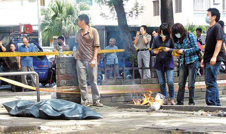 翁姓男子馬上騎摩托車往善士街方向,再右轉(zhuǎn)保泰路,騎了600米抵崗山仔公園,并打手機(jī)給一名林姓女友人,告訴她“我要自殺了”,翁姓男子走入公園,電話都還沒掛斷,即舉槍朝右太陽穴開槍,一槍斃命。