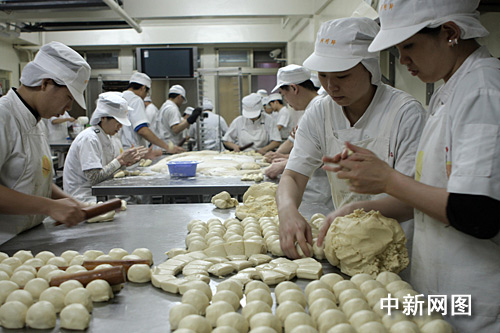 走進(jìn)詹益恭負(fù)責(zé)的阿明師老店的工廠里,記者了解到太陽(yáng)餅制作的全過(guò)程,也終于知道太陽(yáng)餅之所以在味道和口感上與眾不同的“秘訣”。太陽(yáng)餅制作共五道工序。在按照傳統(tǒng)配方選取中筋面粉,低筋骨后,要將面鞣到合適的軟硬度。接著分成雞蛋大小的面團(tuán)后加入“酥”,這個(gè)所謂的“酥”是讓面皮酥軟的關(guān)鍵材料。接著搟皮要層次夠,且力道均勻,裹入內(nèi)餡的牛舌狀面皮厚度需非常平均。在包入麥芽糖餡的時(shí)候完全依靠師傅的經(jīng)驗(yàn)和細(xì)心。包多包少,手法的生熟都會(huì)影響到最后出爐成餅的質(zhì)量。最后烘烤的時(shí)候,根據(jù)餅的大小,調(diào)節(jié)溫度和時(shí)間。時(shí)間上的控制直接影響到麥芽餡的沸騰和蒸發(fā)程度,從而影響到口感?镜臅r(shí)間過(guò)長(zhǎng)則餡兒太硬,不夠的話又不夠香酥。