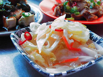 除了水餃外,這里也有賣牛肉面!不過,好吃的小菜很多,最推薦的是清甜爽口的泡菜,吃起來酸酸的帶些甜味,很多早期賣面點的“眷村”也有這樣味道的泡菜。只是老板很有飯店經(jīng)驗,所以即使在小菜的呈現(xiàn)上,配色跟口味都很細致高級。