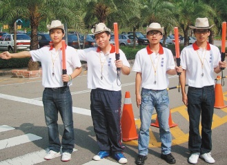 來自福建省漳州職業(yè)技術(shù)學(xué)院的林少瑋、王智鵬、陳志榮、陳燦鑫,來臺讀大學(xué),最近加入“交通服務(wù)隊”社團(tuán),經(jīng)過1周訓(xùn)練,實(shí)際站上路口。