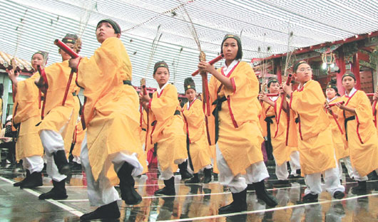 中新網(wǎng)9月28日電 據(jù)臺灣《聯(lián)合報》報道,南投縣各界紀(jì)念大成至圣先師孔子2559周年誕辰釋奠大典,27日上午在埔里鎮(zhèn)昭平宮育化堂孔廟舉行,特別的是,擔(dān)綱六佾舞“佾舞生”的育英小學(xué)首開縣內(nèi)先例,36名佾舞生中,小學(xué)六年級女生就占了19位。