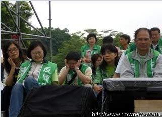 至于謝長廷,也因為精神不濟(jì),先到后臺稍做休息,而靜坐舞臺上,僅剩黨主席蔡英文和游錫堃率領(lǐng)部分黨公職坐在臺上,聽著新聞關(guān)心時事。此外,現(xiàn)場也可發(fā)現(xiàn),部分“立委”因靜坐一宿,體力已超出負(fù)荷,紛紛在舞臺上打起瞌睡,有的人甚至悄悄地消失不見了。