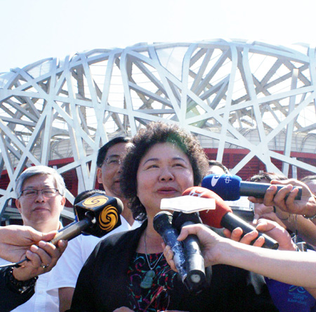 中新網(wǎng)5月22日電 據(jù)“中央社”報道,高雄市長陳菊今天參觀位于北京的國家體育場鳥巢,陳菊稱贊鳥巢是一個現(xiàn)代化并且重視生態(tài)保護(hù)的體育場。