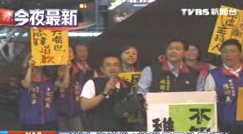 藍(lán)營(yíng)議員高喊:“謝志偉道歉!民視負(fù)責(zé)!謝志偉道歉!”藍(lán)營(yíng)議員算準(zhǔn)謝志偉上班時(shí)間,帶隊(duì)到民視大門口抗議,但兩排警力層層擋住大門口,臺(tái)北縣議員陳明義,腳進(jìn)不去,干脆用手丟雞蛋泄憤。