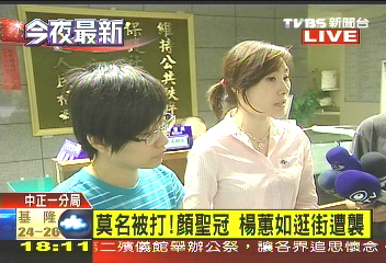 顏圣冠說(shuō):“我問(wèn)她為什么打人?她說(shuō)我打人不對(duì)嗎?你們欠我的!就繼續(xù)往前走,楊蕙如就擋住她,然后她就開(kāi)始攻擊蕙如,把她的手抓傷,用指甲箝住她的手,所以我在旁邊就趕快打電話報(bào)警!