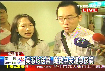 而原本在民進黨高雄市黨部協(xié)助提供法律咨詢的陳致中,在聽聞母親因為血壓過低緊急送醫(yī)后,也隨即趕往醫(yī)院探視。