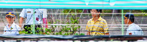 扁最近作息正常,每天放風(fēng),走出舍房曬太陽、運(yùn)動(dòng)。北所為保護(hù)扁安全,今年1月起在他放風(fēng)的運(yùn)動(dòng)場外掛起帆布,但前天仍被記者直擊扁放風(fēng)畫面?梢钥闯鏊袅祟^發(fā),穿著深藍(lán)色短褲、藍(lán)白拖鞋,繞著運(yùn)動(dòng)場慢走。