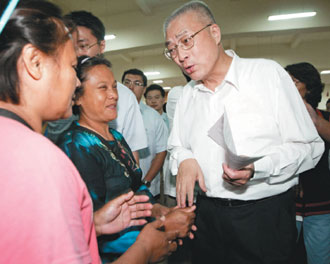 昨晚八時二十分,吳敦義與“副院長”朱立倫、“秘書長”林中森等官員,在高雄縣長楊秋興陪同下,抵達陸軍官校禮堂,與收容在校內的桃源鄉(xiāng)災民座談,聽取災民心聲。