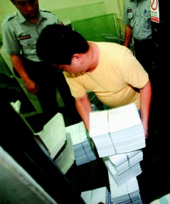 為避免意外,一直到深夜12點(diǎn),轄區(qū)中正一分局及法警還在臺北地院四周戒護(hù)。這時眼尖的記者看到蔡守訓(xùn)抱著一千多頁的判決書步出辦公室,書類上貼了許多黃色的便利貼,交給專人送到法院附近的印刷廠,連夜趕印。