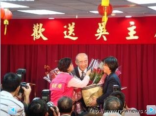 由于吳伯雄即將卸任,因此,臺當(dāng)局“行政院長”吳敦義、“行政院副院長”朱立倫等人都到國民黨向吳伯雄致意,此外,國民黨還特別在中常會后舉行歡送茶會。