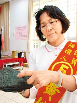 桃園縣議員第一選區(qū)公辦政見發(fā)表會(huì)二十六日舉行,十九位候選人中僅五人到場(chǎng),而呂秀紋則因?yàn)檫t到,錯(cuò)失上臺(tái)闡述政見的機(jī)會(huì),郭貴香丈夫、也是前縣議員黃享欽,原本欲替老婆代打遭制止,而參與政見發(fā)表會(huì)候選人各出奇招,黃婉如脫鞋秀破鞋表示勤走基層、黃智銘拿出口罩凸顯甲型流感疫情嚴(yán)重性,盼選民能清楚了解其政見。