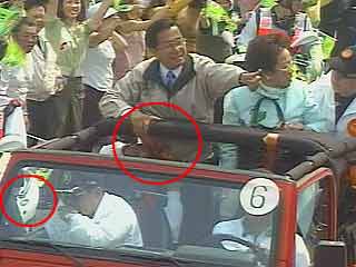 后來確認(rèn)是中槍,送到病房之前,在急診室里,呂秀蓮在旁邊掀了掀布簾要和陳水扁講話,“她說:絕對(duì)是她先中槍,然后我才中槍,而我中的那槍,是打中她的子彈反彈到我身上來的,所以我才會(huì)受傷!标愃庹f,他告訴呂秀蓮不要隨便亂講,“我知道的不是那樣,而相關(guān)人員向我做的報(bào)告也不是如此!碑(dāng)時(shí)他穿了三層衣服,夾克、襯衫和內(nèi)衣,他的右側(cè),三層衣服都有子彈的穿入的痕跡,而靠近呂秀蓮的左側(cè),只有內(nèi)衣與襯衫有穿孔,夾克則沒有。
