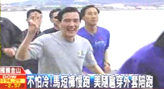 報(bào)道稱,馬英九真的是不怕冷,在舊金山陰雨綿綿、又濕又冷的清晨,馬英九則是穿著小短褲的招牌慢跑勁裝出現(xiàn)。