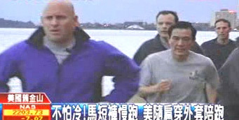 馬英九的堅(jiān)持要戶外運(yùn)動(dòng),可苦了美國(guó)的隨扈們,幾名外國(guó)特勤也被迫一大早起床跟著跑。