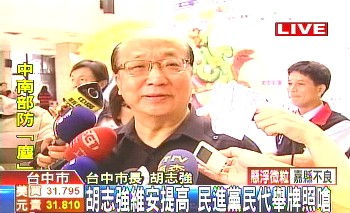 胡志強日前曾遭到一名大學生亮刀嗆聲,維安問題再度被關注。臺中市警局擬提高維安規(guī)格,比照“直轄市長”,胡志強表示尊重專業(yè),絕對配合警方。