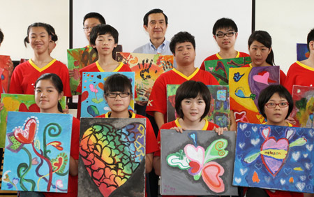 在融合班級中,有普通的學(xué)生,也有肢體障礙、輕度智能障礙或自閉癥的學(xué)生,學(xué)生們用畫作表達(dá)“融合”的真諦,共同學(xué)習(xí)“關(guān)懷、包容、尊重”的真義,讓馬英九相當(dāng)感動,直呼“今天真讓我好好上了一課”。