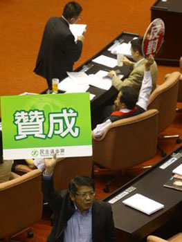 晚間10時,民進黨團在表決現(xiàn)場僅留下3 人,國民黨團安排59人留守,因此,表決結(jié)果由國民黨團主導(dǎo)。