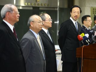 據(jù)報(bào)道,“內(nèi)政部長(zhǎng)”江宜樺、“檢察總長(zhǎng)”黃世銘、“高等法院檢察署檢察長(zhǎng)”顏大和、“法務(wù)部調(diào)查局長(zhǎng)”吳瑛、“國(guó)防部憲兵司令部司令”李翔宙等人,10日在刑事局舉行聯(lián)合記者會(huì),說(shuō)明現(xiàn)階段強(qiáng)化治安措施、掃黑行動(dòng)的“霹靂專案”。
