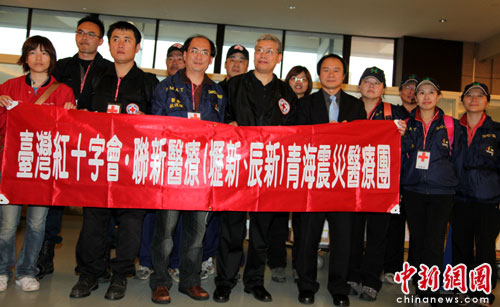 中新社桃園機(jī)場4月18日電(記者 董會峰 羅欽文)18日上午9時許,臺灣紅十字組織醫(yī)療團(tuán)搭乘華航CI641班機(jī)啟程,經(jīng)香港、北京轉(zhuǎn)機(jī),赴青海西寧協(xié)助救治傷員。