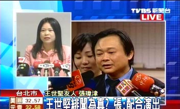 當(dāng)時王世堅還公開錄音帶,證明3個人的確是在旅館房間內(nèi)談公事。只是,事隔1年,這名當(dāng)時的證人張瑋津跳出來翻供,說是基于同情心,怕王世堅的太太受到傷害,才配合做假的錄音帶,還強(qiáng)調(diào),“我真的說了謊!