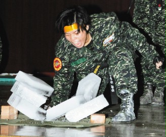 臺(tái)陸軍體干班將由女兵負(fù)責(zé)表演“刺槍擊破”,陸戰(zhàn)隊(duì)莒拳隊(duì)則由具有跆拳道五段的女兵表演破冰、破磚的猛勁。