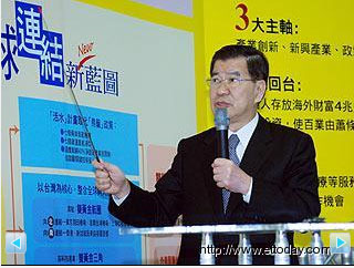 蕭萬長指出“產(chǎn)業(yè)再造”藍(lán)圖,以“創(chuàng)新”、“永續(xù)”、“開放”作為三大理念,以“產(chǎn)業(yè)創(chuàng)新”、“新興產(chǎn)業(yè)”、“政策松綁”作為三大主軸,以“創(chuàng)造就業(yè)機(jī)會”、“建設(shè)美麗家園”、“打造臺灣新形象”作為三大目標(biāo)。