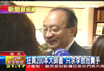 報(bào)道說(shuō),堆得高高的一疊書(shū)籍,全部都是李敖的新書(shū)“議壇哀思錄”;別以為是哪個(gè)超級(jí)粉絲買下它,這2百本書(shū)籍的主人,其實(shí)是民進(jìn)黨團(tuán)總召柯建銘?陆ㄣ懻f(shuō),“基本上200本,但李敖有打折,同事之間有算便宜一點(diǎn)!