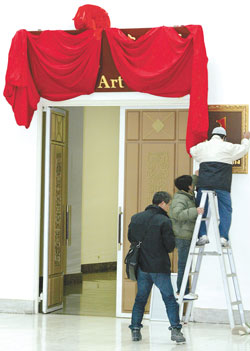此外,館內(nèi)有關(guān)“中正”二字的展示廳牌匾皆用紅布覆蓋,館長(zhǎng)曾坤地不愿透露大廳如何布置。