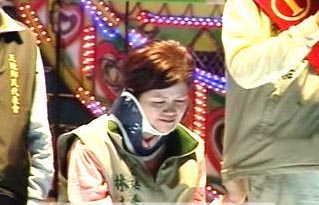 與此同時(shí),民進(jìn)黨候選人余天在臺(tái)北縣舉辦造勢晚會(huì)。因嚴(yán)重氣喘住院的妻子也跟醫(yī)院告假來到現(xiàn)場,痛哭失聲為丈夫站臺(tái)。
