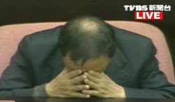 可能因?yàn)槿唛L的會(huì)議,杜正勝用力搓揉自己的眼睛,似乎想讓自己打起精神來,但抵抗不住濃濃的困意,開始閉目養(yǎng)神。