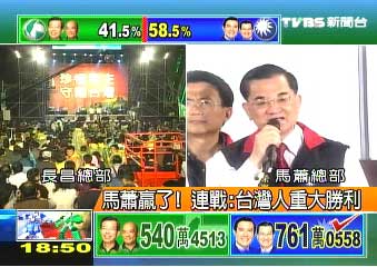 馬蕭大勝! 連戰(zhàn):“臺灣不再有對立仇恨”(圖)