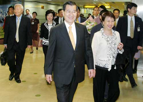 蕭萬長率領(lǐng)“兩岸共同市場基金會(huì)”代表團(tuán)一行是在十一日上午搭機(jī)經(jīng)由香港前往海南,同行的有淡江大學(xué)教授蘇起、臺(tái)積電董事長張忠謀夫婦、華新麗華董事長焦佑倫和臺(tái)灣水泥董事長辜成允等人。