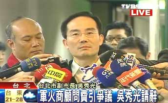 中新網(wǎng)4月24日電 據(jù)臺(tái)灣TVBS報(bào)道,被雜志報(bào)道疑似收受軍火商顧問費(fèi)引發(fā)爭(zhēng)論的臺(tái)北市副市長(zhǎng)吳秀光,23日大動(dòng)作控告媒體以及民進(jìn)黨民意代表后,原本說不再發(fā)言的他,下午4點(diǎn)再度召開記者會(huì)。