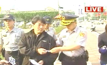 其中一名男子頭戴斗笠、穿著“阿扁下臺(tái)”的服裝,站在官邸前表達(dá)不滿。在警方把他架到警車時(shí),他突然昏厥倒地不愿配合。警方最后只好將他抬上車。