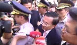 中新網(wǎng)7月21日電 陳水扁卸任后21日首次以被告身分出庭應訊,臺北地方法院提高警力戒護,內外周圍布滿維安人員,總共出動將近200名警力,不過陳水扁臨時改變路線,從臺北地檢大門進入,讓現(xiàn)場秩序一度陷入混亂。