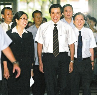 馬英九昨天下午連同臺當局“行政院長”劉兆玄、“國安會”副秘書長高長等人視察“陸委會”,“陸委會”科長以上層級官員全數(shù)出席,聽取馬英九演講;;鶗驗槎麻L江丙不在島內(nèi),由秘書長高孔廉、副秘書長林淑閔率領各處室主管在座。