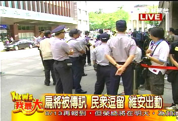 據(jù)臺灣媒體報(bào)道,特偵組所在地目前已經(jīng)有許多民眾守候。警方不敢大意,對在場的媒體及民眾進(jìn)行搜證,并使用金屬探測器沿街檢查。