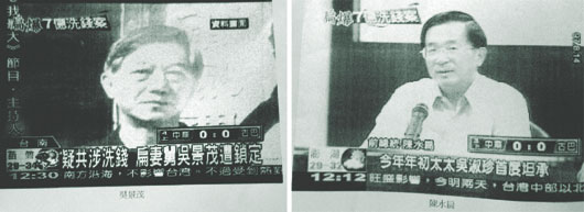 陳水扁與吳景茂被限制出境,臺(tái)“海巡署”翻拍兩人電視畫(huà)面近照,供各港口安檢人員比對(duì)查核。(圖:臺(tái)灣《聯(lián)合報(bào)》)