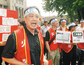 陳水扁洗錢風(fēng)暴延燒,綠營(yíng)昨天上演“兒子嗆老子”情景。據(jù)臺(tái)媒報(bào)道,臺(tái)灣“人民火大聯(lián)盟”昨天到民進(jìn)黨抗議,要求民進(jìn)黨主席蔡英文追討扁產(chǎn)贖罪,而帶頭抗議的王醒之正是民進(jìn)黨秘書(shū)長(zhǎng)王拓的兒子。對(duì)此,王拓昨晚不愿多回應(yīng),僅尷尬表示“明天再說(shuō)吧”。