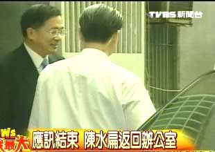 偵訊逾4小時(shí) 陳水扁快閃離開(kāi)特偵組未發(fā)表談話