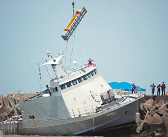 中新網(wǎng)9月27日電 臺“光華6號”導彈快艇因執(zhí)行“漢光演習”任務而意外擱淺在嘉義布袋港外,經(jīng)過一天搶救還是無法拖離,海軍方面26日只得先找來吊車把4枚導彈先拆除、吊走,一方面確保導彈安全,一方面減輕重量,希望能在漲潮時讓快艇脫困。